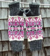 22 sts & 23 rows = 4” in color patt, with size 8 ndls;