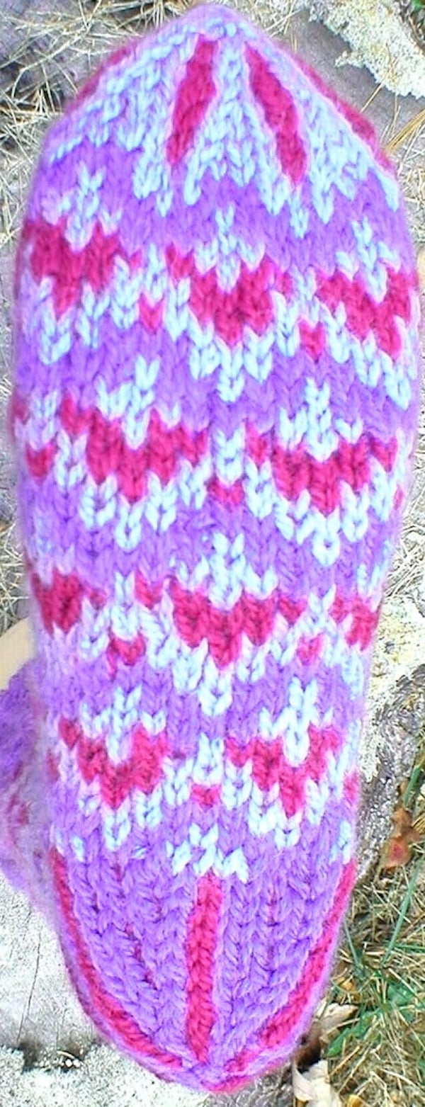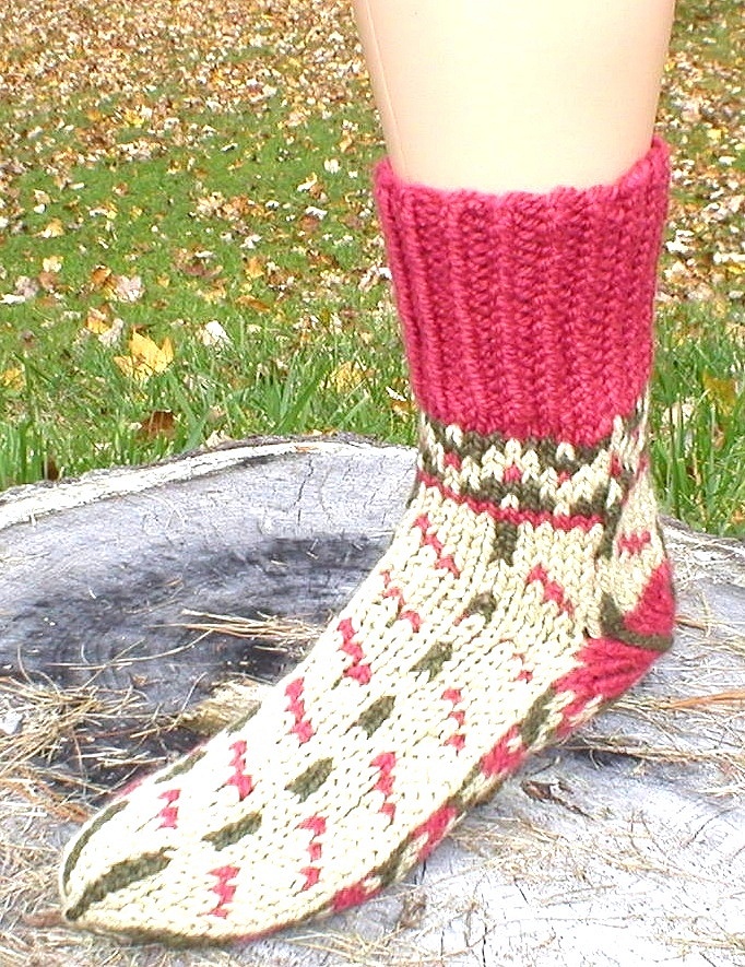 This pattern is really 2 patterns – Shortie Slippers and Faeroe Slipper Socks, both from the Winter 2004 issue of my Heels & Toes Gazette, re-released as a single pattern, for your continued enjoyment (as the Gazette is out of publication.)