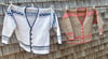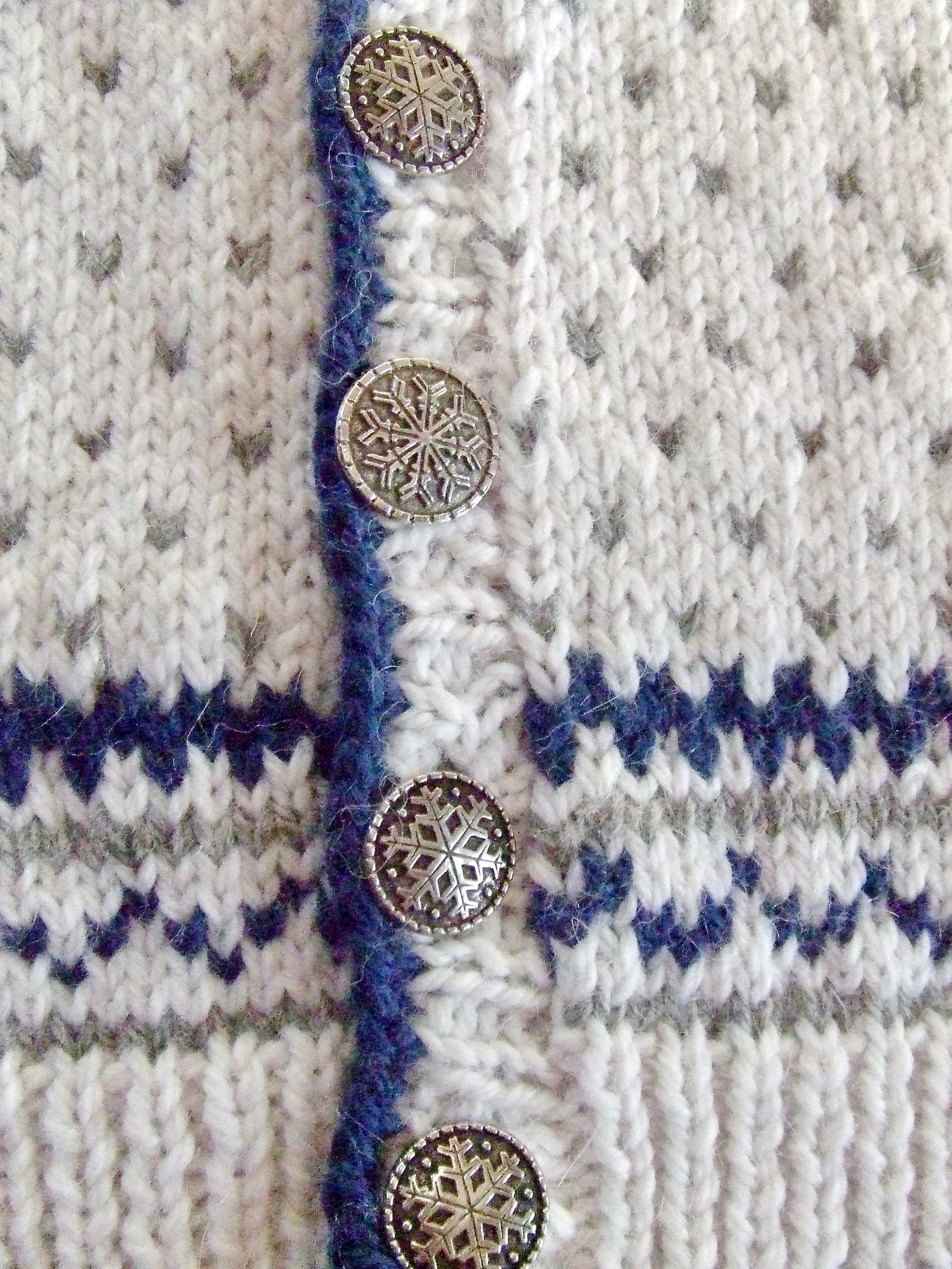 Knit bottom up in one piece to the armholes. Once the v-neck fronts and the back are knit and joined, sleeve stitches are knit up and worked down to the cuffs. The button band is then knit up around the front edge.