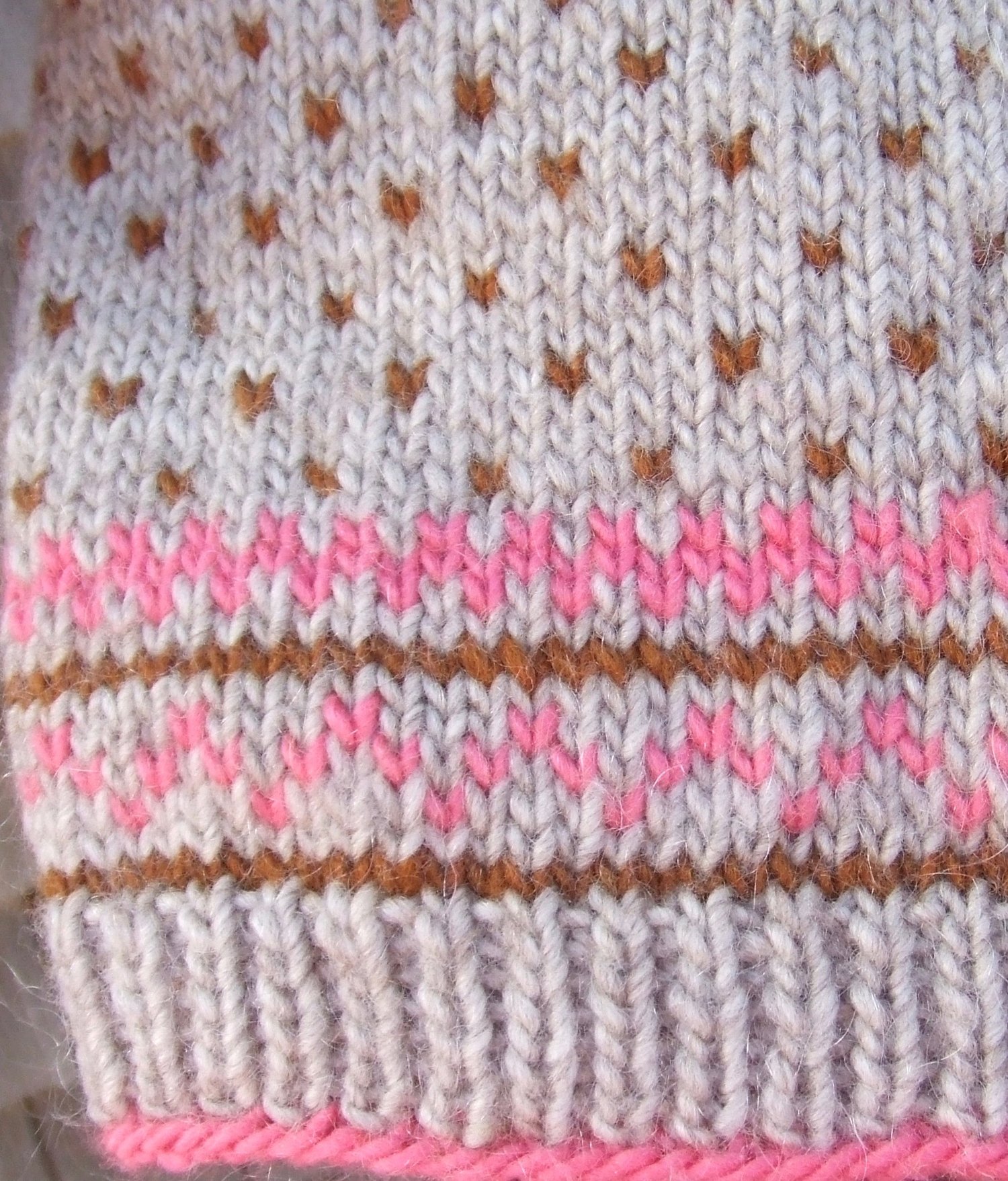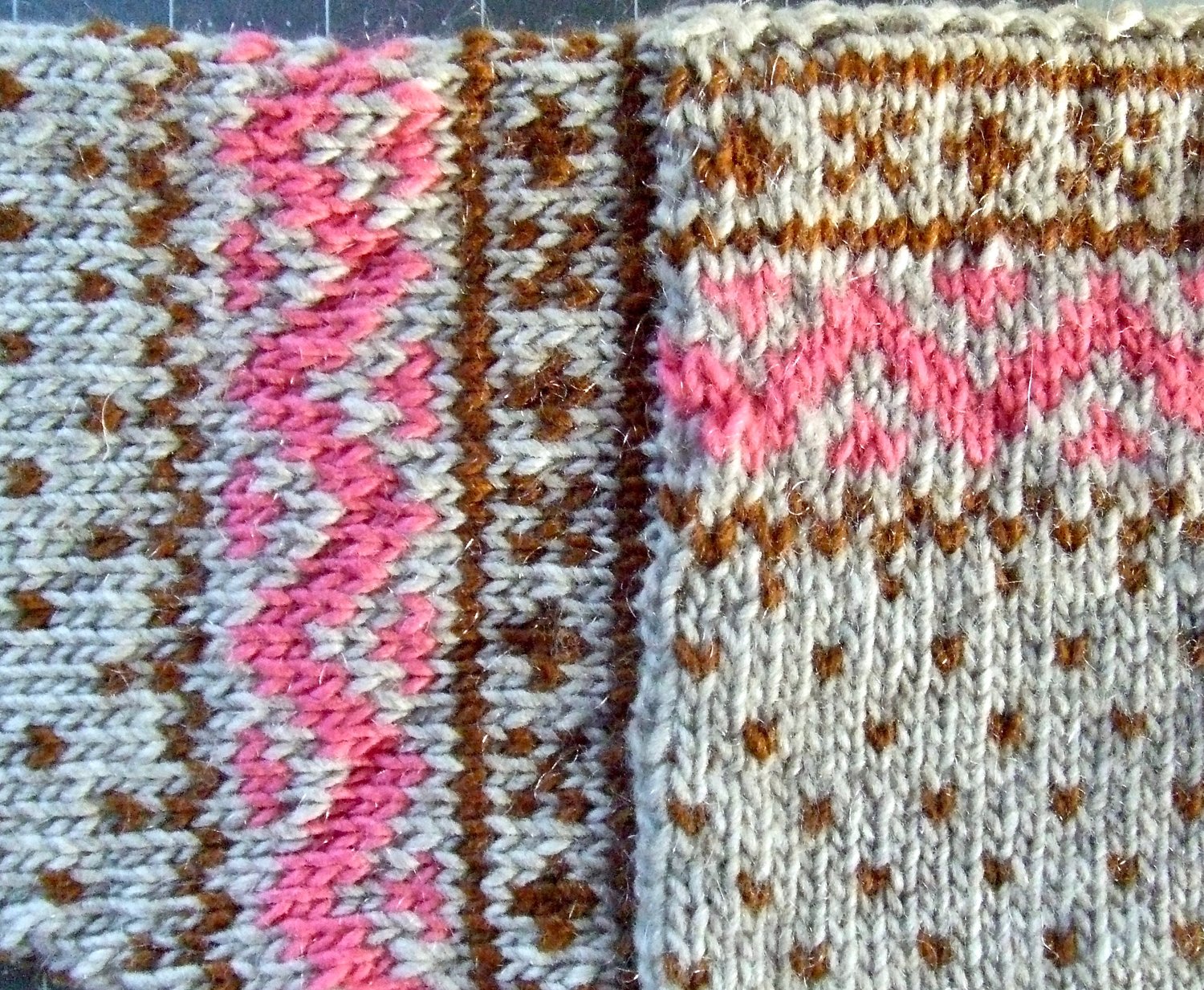 Sampled in 3 non-traditional colors in Lamb’s Pride Worsted, and 3 traditional colors in Drops Nepal, but, of course, it can be knit in your favorite smooth heavy worsted weight wool.